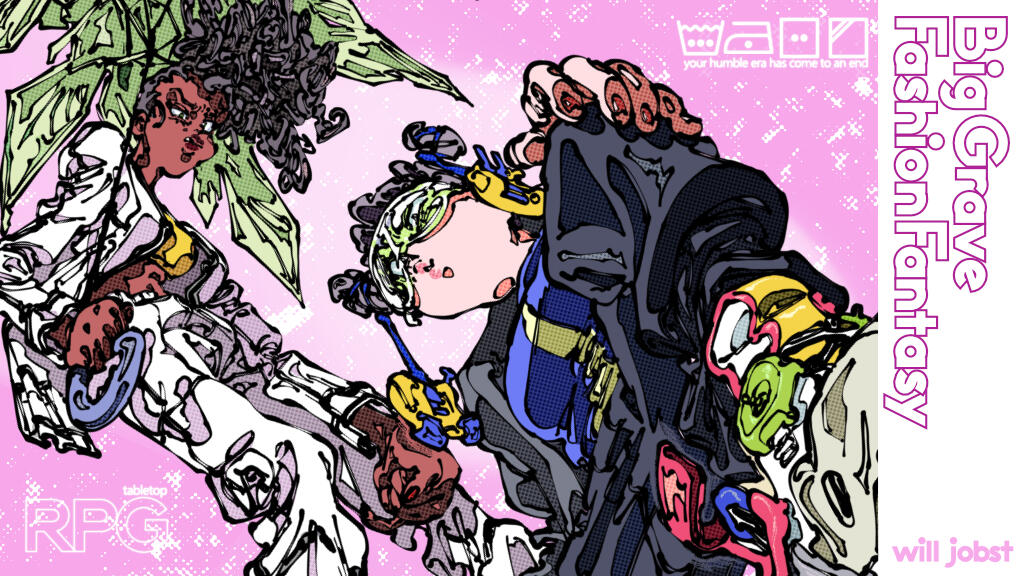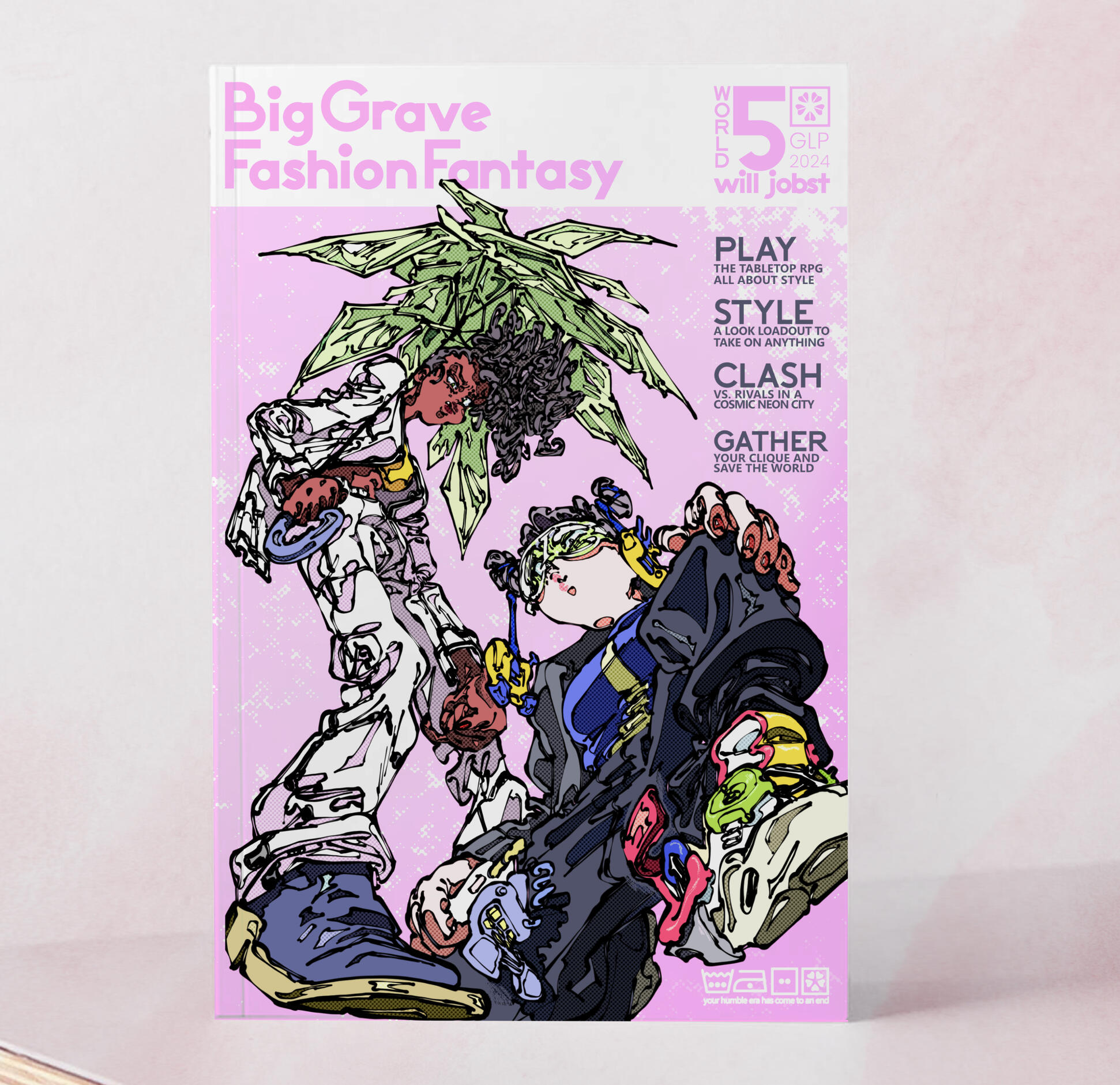 Big Grave Fashion Fantasy is the tabletop roleplaying game all about looks, style, and how you express yourself, while clashing with style rivals in the cosmic neon city of WORLD5.